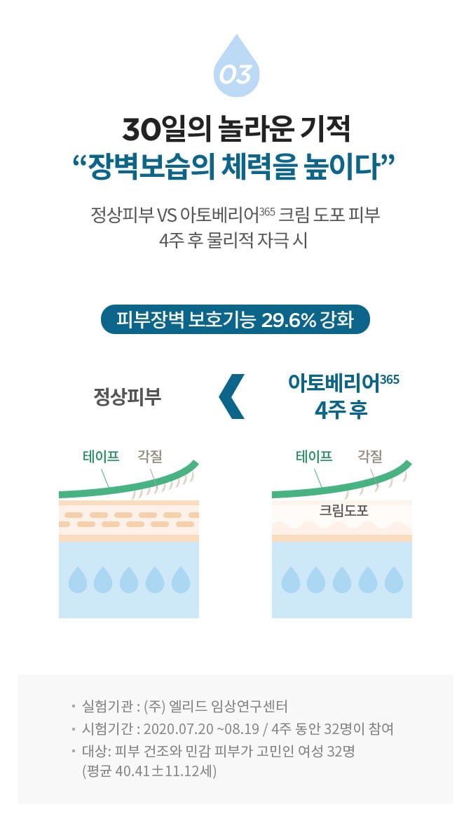 일상생활에서 건조한 피부의 장벽기능을 강화하고, 데일리 집중 고보습을 통해 부드럽고 탄탄한 보습막을 형성하여, 매일 매일 건조한 피부에 강력한 보습을 제공합니다.