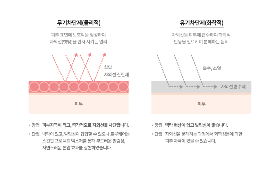 물리적으로 자외선을 반사해 피부 자극을 줄였습니다.