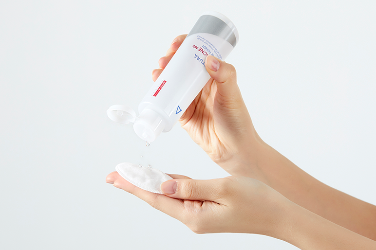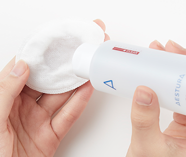 세안 후 적당량을 화장솜에 덜어내어 줍니다.